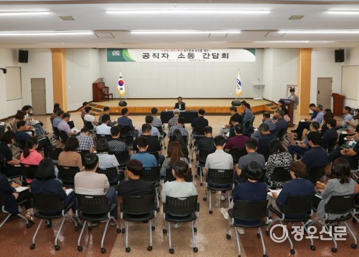 주영환 부군수는 13일 군청 강당에서 국소장, 실과‧읍면장, 군 전체 실과 팀장 등 110여명이 참석한 가운데 소통 간담회를 가졌다.