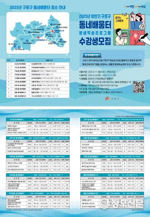 정오신문 관리자 기자 | 구로구가 ‘2025년 하반기 동네배움터’ 수강생을 이달 11일부터 선착순 모집하고 있다고 밝혔다.