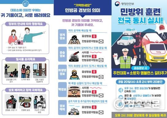 이번 훈련은 ▲적 공습 대비 민방위 대피훈련 ▲긴급차량(소방차․앰뷸런스) 길 터주기 훈련을 포함해 진행된다.
