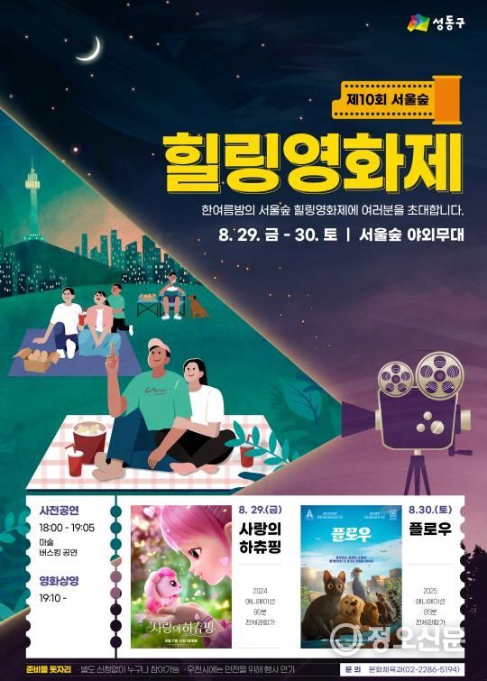 정오신문 관리자 기자 | 서울 성동구가 도심 속 대표 휴식 공간인 서울숲 야외무대에서 이달 29일과 30일 양일간 ‘제10회 서울숲 힐링영화제’를 개최한다고 밝혔다.