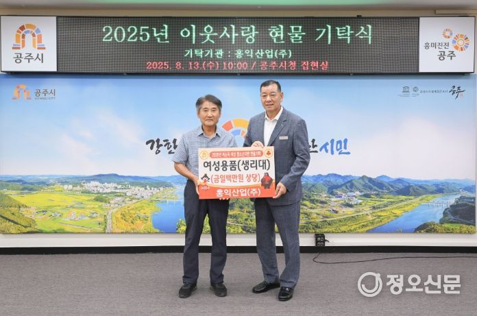 정오신문 관리자 기자 | 공주시는 지난 13일 시청 집현실에서 홍익산업(주)(대표 김동엽)가 관내 저소득층 여학생을 위해 100만 원 상당의 생리대 세트를 기탁했다고 밝혔다.