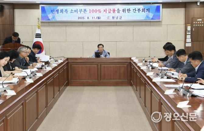 군은 지난 11일 아침 군수 주재로 민생회복 소비쿠폰 지급률 100% 달성을 위한 간부회의를 개최했다. 이날 회의에서는 지급률 현황을 공유하고, 지급률이 저조한 읍·면의 상황을 점검하며 대책을 논의했다.