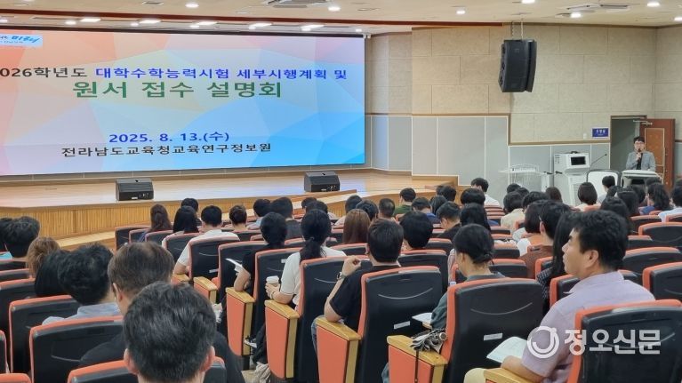 이와 관련, 전남교육청은 학교현장의 혼선을 최소화하기 위해 지난 13일 전라남도교육청교육연구정보원에서 ‘2026학년도 대학수학능력시험 세부시행계획 및 원서접수 설명회’를 개최했다.