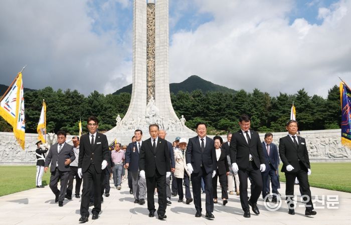 정오신문 관리자 기자 | 이장우 대전시장이 제80주년 광복절을 맞아 15일 오전 유성구 국립대전현충원을 찾아 순국선열과 호국영령을 참배했다. 이날 참배에는 양준영 광복회 대전시지부장, 서승일 대전지방보훈청장, 보훈 단체장, 독립 유공자 유가족 등 80여 명이 함께했다.