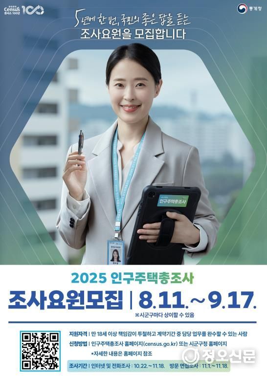 정오신문 관리자 기자 | 제천시가 ‘2025년 인구주택총조사’를 위한 조사요원을 93명 모집한다.