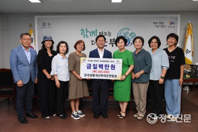정오신문 관리자 기자 | 한국생활개선부여군연합회(회장 고승현)는 지난 13일 부여군청을 방문하여 인재 육성을 위한 장학금 1백만 원을 (재)부여군굿뜨래장학회(이사장 박정현)에 기탁했다.