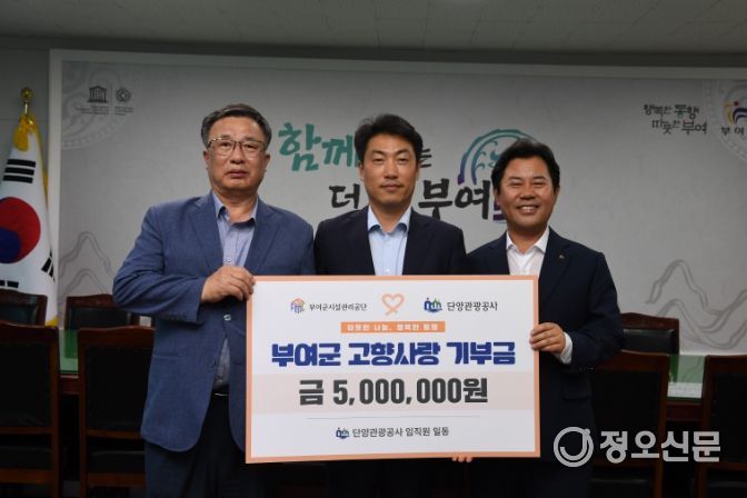 이날 행사에서 단양관광공사 임직원 일동은 고향사랑기부금 5백만 원을 전달했으며, 부여군시설관리공단 역시 지난 7월 25일 단양군에 기부금 5백만 원을 전달했다.
