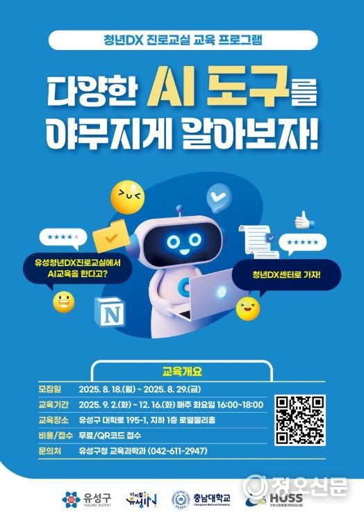 정용래 유성구청장은 “AI와 디지털 기술이 빠르게 확산되는 만큼, 누구도 소외되지 않도록 실질적인 교육 기회를 지속적으로 제공하겠다”라며 “구민 모두가 AI 시대에 능동적으로 적응할 수 있도록 적극 지원하겠다”라고 말했다.