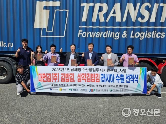 정오신문 관리자 기자 | (재)목포수산식품지원센터는 지난 8월 14일 목포시 대양산업단지 내 대천김(주)에서 러시아 수출 선적식을 개최했다고 밝혔다.