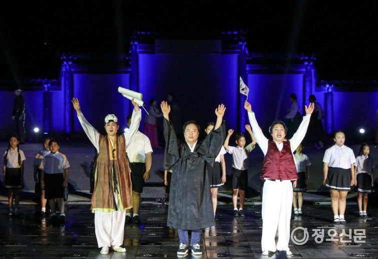 권기창 시장은 이날 공연에서 독립운동가 역할로 무대에 올라 독립선언문을 낭독하고 “대한독립 만세”를 힘차게 외치며, 조국 광복을 위해 목숨을 바친 선열들의 숭고한 정신을 되새겼다. 관객들은 시장과 배우들이 함께한 만세삼창에 큰 박수와 환호로 화답하며 공연의 감동을 함께했다.