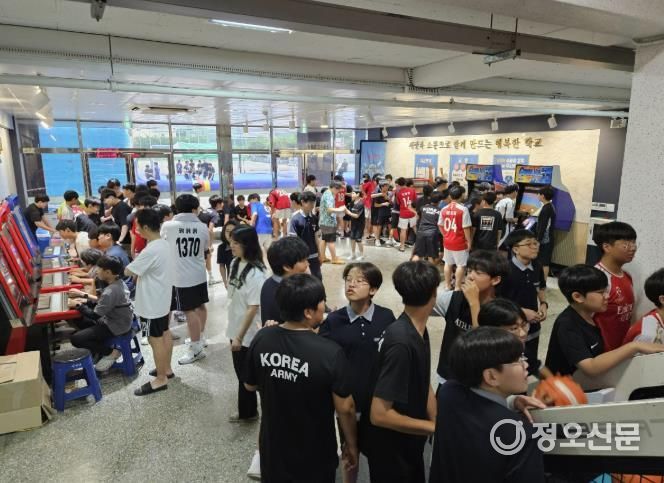 동두천중학교는 학급 자치회와 전교생, 관내 초등학교 5·6학년 학생들이 함께 참여한 가운데, 여름철에 맞춰 워터슬라이드와 대형 풀장을 설치하고 다양한 물놀이 이벤트를 진행했다.
