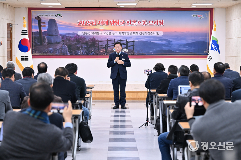 정오신문 윤혁수 기자 | 양평군은 2025년 1월 23일 양평군청 대회의실에서 신년 기자회견을 열고, 군정 비전과 주요 정책 방향을 발표했다. 이번 기자회견에는 전진선 양평군수를 비롯한 주요 공무원들이 참석했으며, 언론사와 지역 주민들이 뜨거운 관심 속에 함께했다.