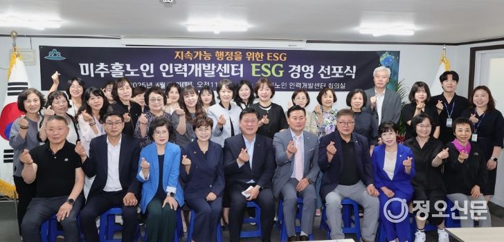 정오신문 관리자 기자 | 인천 미추홀노인인력개발센터는 지난 10일 환경·사회·지배구조(ESG) 경영 선포식을 개최하고, 노인 일자리 창출을 통한 지속 가능한 사회적 책임 실현을 공식 선언했다.