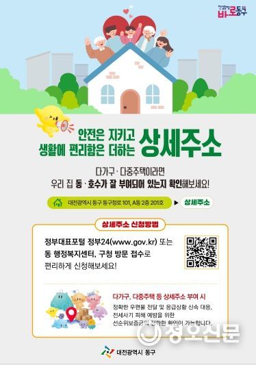 한편, 상세주소는 건물 소유자 또는 소유자의 동의를 받은 임차인이 신청할 수 있으며, 건물 배치도와 임차인임을 증명할 수 있는 서류를 첨부해 동구청 토지정보과를 방문하거나, 정부24 홈페이지를 통해 온라인으로도 신청이 가능하다.