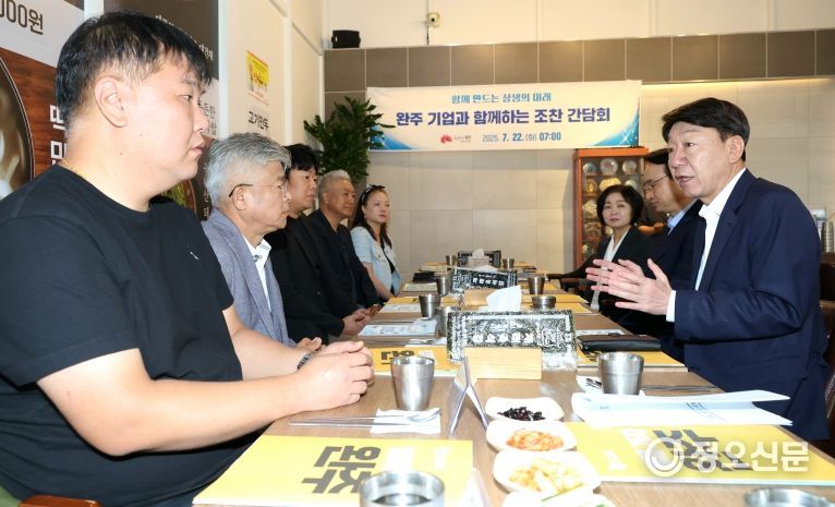 우범기 시장은 22일 이른 아침 전북혁신도시 내 한 식당에서 완주 기업인들과 조찬 간담회를 갖고 지역경제 활성화와 완주·전주 통합에 대한 다양한 의견을 나눴다.