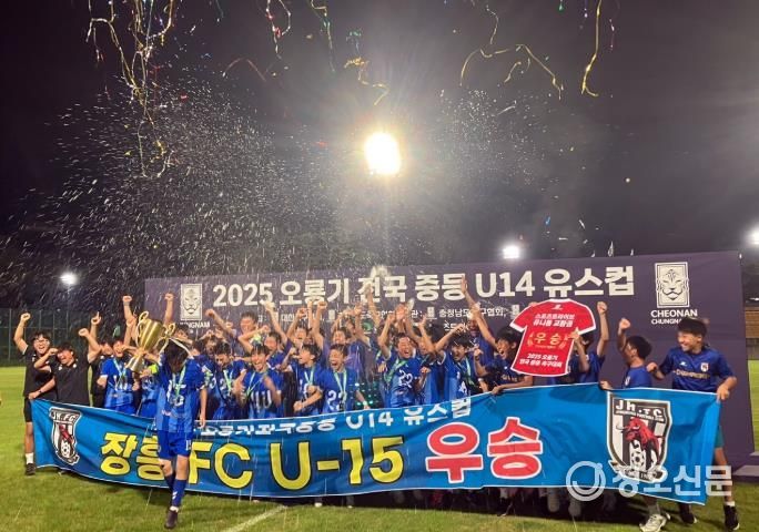정오신문 관리자 기자 | 장흥군 축구 스포츠클럽인 장흥FC가 충남 천안에서 열린 ‘2025 오룡기 전국 중등 축구대회’에서 저학년부(U-14) 우승을 차지했다.