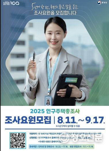 정오신문 관리자 기자 | 대전 유성구는 오는 10월 22일부터 11월 19일까지 실시되는 2025년 인구주택총조사의 조사 요원을 모집한다.