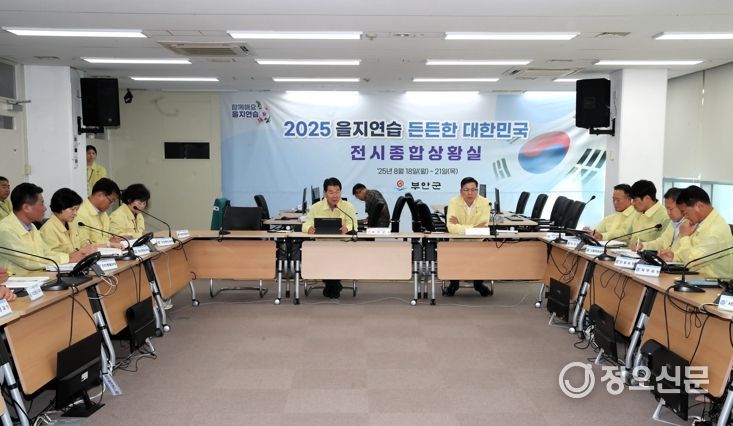 정오신문 관리자 기자 | 부안군은 18일 군청 5층 대회의실에서 60여명이 참석한 가운데 2025년 을지연습 최초 상황보고회를 개최했다.