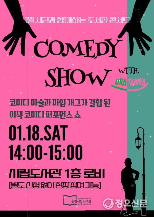 춘천시립도서관 관계자는 “2025년 새해 첫 공연은 시민 모두가 마음껏 웃고 즐길 수 있는 코미디 공연”이라며 “도서관 프로그램을 통해 시민의 올 한 해가 즐겁고 행복하기를 바란다”라고 전했다.
