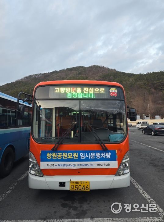 정오신문 관리자 기자 | 창원특례시는 설 연휴 기간 동안 성묘객들의 이동 편의 증진을 위하여 창원공원묘원과 창원시립상복공원을 운행하는 시내버스 임시노선을 편성했다고 밝혔다.