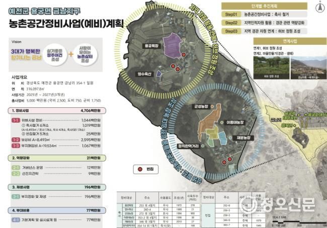 정오신문 관리자 기자 | 예천군은 농림축산식품부에서 주관하는 ‘2025년도 농촌공간정비 공모사업’에 용궁면 금남지구가 최종 선정돼 총사업비 50억원을 확보했다.