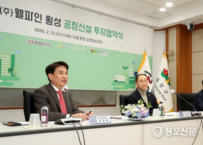 정오신문 주재영 기자 | 강원특별자치도가 횡성군, (주)웰파인과 함께 2월 12일 도청 본관 소회의실에서 투자협약식을 체결했다.
