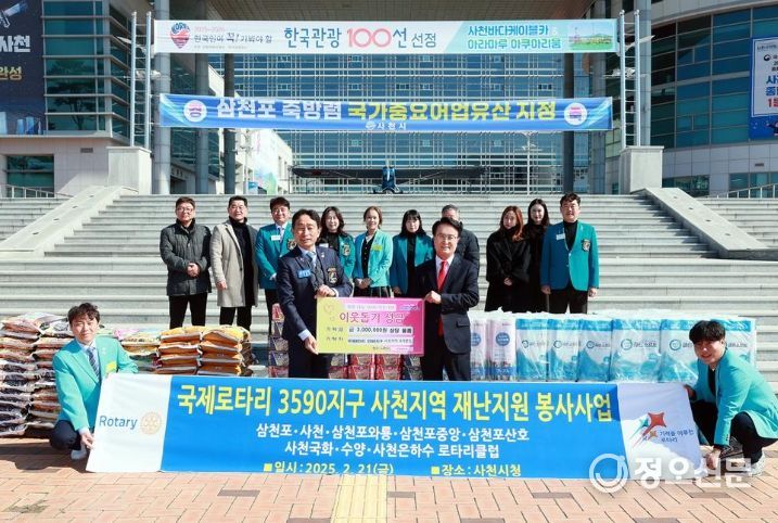 정오신문 관리자 기자 | 국제로타리 3590지구 사천지역 8개 클럽(대표 탁종용)은 21일 관내 저소득 계층을 위해 써달라며 희망나눔 4000 이웃돕기 물품(환가액 300만원 상당)을 기탁했다.