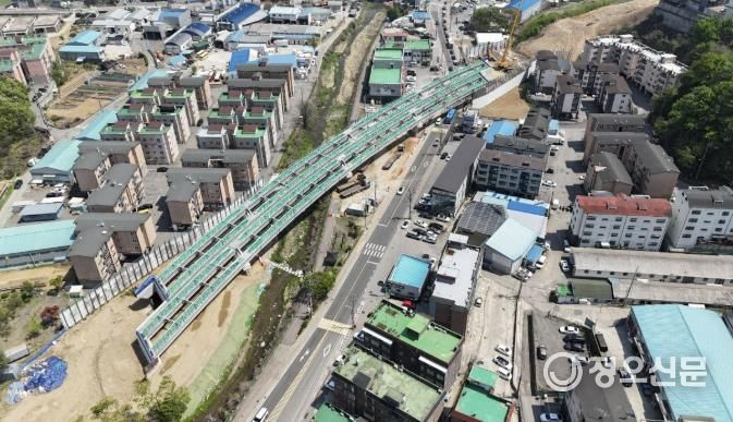이번에 설치된 교량 거더는 총 200m에 달하는 대형 구조물로 신기술 공법을 적용해 최신 대형 장비를 동원해 설치가 이뤄졌다. 모든 작업은 철저한 안전관리 체계하에 계획대로 차질 없이 진행됐다.