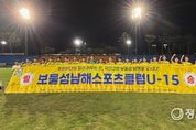 정오신문 관리자 기자 | 보물섬남해스포츠클럽이 지난 7월 26일부터 8월 7일까지 13일간 천안시에서 개최된 ‘오룡기 전국 중등 축구대회’에서 우승을 차지했다. 이번 대회는 대한축구협회와 충남축구협회가 공동 주최하고, 충남축구협회와 천안시축구협회가 주관한 전국 규모의 중등 축구대회로, 전국 각지에서 모인 유망 중등 축구팀들이 열띤 경쟁을 펼쳤다. 결승전에서 보물섬남해스포츠클럽은 경기도 염기훈 주니어축구클럽과 맞붙어, 후반전에만 두 골을 터뜨리는 집중력을 발휘하며 2:0으로 승리했다. 전반전 팽팽한 접전을 이어가던 중, 후반 64분 한호담 선수가 선제골을 기록하며 분위기를 가져왔고, 이어 70분에는 고백호 선수가 쐐기골을 터뜨리며 2:0 승리를 완성했다. 유스컵 대회(U14)에서도 역시 8강에 진출하는 값진 성과를 거두며, 보물섬남해스포츠클럽의 세대별 전력 강화가 고르게 이뤄지고 있음을 보여주었다. 이번 대회에서 보물섬남해스포츠클럽은 팀 성과뿐 아니라 개별 선수들의 두각도 두드러졌다.(수상실적 참조) 장충남 남해군수는 “무더운 날씨 속에서도 최선을 다해 경기에 임해준 선수
