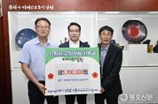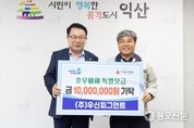정오신문 관리자 기자 | 익산시는 '㈜우신피그먼트(대표 장성숙)'가 시청을 방문해 성금 1,000만 원을 기탁했다고 12일 밝혔다. 이날 전달된 성금은 전북사회복지공동모금회(사랑의열매)의 특별모금으로 기탁된 후 호우 피해를 입은 주민과 피해 지역 복구 지원에 사용될 예정이다. 장덕인 ㈜우신피그먼트 익산공장장은 "기록적인 폭우로 어려움을 겪고 있는 이재민들에게 조금이나마 힘이 되길 바란다"며 "빠른 복구와 일상회복을 진심으로 기원한다"고 전했다. 정헌율 익산시장은 "지역을 넘어선 연대와 협력에 힘을 보태준 ㈜우신피그먼트에 깊이 감사드린다"며 "호우 피해 지역 회복에 보탬이 되도록 성금을 소중히 전달하겠다"고 말했다. 한편, ㈜우신피그먼트는 염료, 안료, 기타 조색제 제조 전문기업으로 서울에 본사를 두고 익산시에 공장을 운영하고 있다. 2022년부터 익산 저소득 가구를 위한 성금 지원과 장학금 전달 등 지역사회를 위한 꾸준한 나눔을 이어오고 있다.