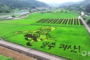 정오신문 관리자 기자 | 충북 괴산군이 유색벼를 활용한 독창적인 논 그림 경관사업을 올해도 이어가며, 농촌을 찾는 방문객들에게 색다른 볼거리를 제공하고 있다. 군은 올해 문광저수지와 사리 꿀벌랜드 인근 두 곳에 총 1만3,980㎡ 규모의 논 그림을 조성했다. 문광저수지 일원 1만693㎡에는 풍속화 대가 김홍도의 대표작 '무동(舞童)'을 형상화해 활기차고 역동적인 장면을 담아냈으며, 사리 꿀벌랜드 인근 3,287㎡에는 꿀벌이 꿀을 채집하는 모습을 귀여운 캐릭터로 표현해 눈길을 끈다. 문광저수지 논 그림은 괴산군의 특허 기술을 이전받은 라울영농조합법인과 청년농업인 단체 4-H가 함께 조성했고, 꿀벌 그림은 괴산군이 직접 추진했다. 같은 기술을 이전받은 푸른들영농조합법인은 올해 여주에 '무직타이거', 철원에 '논아트'를 조성하는 등 괴산의 기술을 전국 각지로 확산시키고 있다. 논 그림 제작에는 괴산군이 보유한 '유색벼를 이용한 논의 그림 형성방법'(특허 제10-1075121호)이 적용됐다. 군은 이번 논 그림이 오는 10월 수확기까지 관람객들에게 즐거움을 선사할 것으로 기대하고