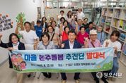 정오신문 관리자 기자 | 충북 증평군이 12일 증평송산 휴먼시아 1단지 내 초롱이행복돌봄나눔터에서 ‘마을 손주돌봄 추진단’발대식을 개최하고, 지역 주도형 아동 돌봄 모델의 본격적인 운영을 알렸다. 이날 발대식은 송산1리 주민 중 공개 모집을 통해 선발된 돌봄 추진단원 16명이 참석한 가운데 △추진단 소개 △선언문 낭독 △이재영 군수 격려사 △기념촬영 △다과 간담회 순으로 진행됐다. ‘마을 손주돌봄 추진단’은 이번 여름방학부터 초롱이 작은도서관 내 ‘행복돌봄나눔터’에서 지역 아동을 대상으로 돌봄서비스를 제공하고 있다. 특히 일부 초등학교의 방학이 2개월에 달하는 가운데, 저학년 자녀를 둔 맞벌이·한부모 가정의 돌봄 공백 해소에 큰 도움을 주고 있다는 평가다. 이미 초롱이 행복돌봄나눔터는 지난해부터 경로당 어르신들이 주축이 돼 주중은 물론 주말까지 자발적으로 아이들을 돌보는 돌봄 활동을 이어오고 있는 지역 공동체 돌봄의 우수사례로 주목받고 있다. 특히 공동주택 내 작은도서관을 활용한 돌봄 모델은 여러 언론사와 연구기관의 벤치마킹 대상이 되고 있다. 이흥연 초롱이작은도서관 관장은