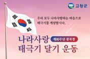 정오신문 관리자 기자 | 전북 고창군이 광복 80주년을 맞아 선열들의 숭고한 애국정신을 기리고, 국기의 존엄성을 높이기 위해 ‘범군민 태극기 달기 운동’을 진행한다고 12일 밝혔다. 태극기 달기는 8월15일 광복절 당일을 중심으로 관공서, 가정, 민간기업, 단체, 주요 도로변 등 전 군민이 태극기를 게양하는 방식으로 진행된다. 태극기 게양 시간은 △국가·지자체와 공공기관 청사는 24시간 △각급 학교와 군부대 주 게양대는 낮 동안 △가정·민간기업·단체는 오전 7시부터 오후 6시까지다. 고창군은 13~15일 군 전역 주요 노선에 가로기 2000여 개를 게양해 광복절 분위기를 확산시킬 계획이다. 또한 단독주택은 대문에, 공동주택은 세대 난간의 중앙이나 왼쪽에, 실내는 전면을 바라보았을 때 왼쪽 또는 중앙에, 차량은 전면 기준 왼쪽에 태극기를 게양하도록 안내했다. 특히 올해에는 광복 80주년을 맞아 14개 읍면을 대상으로 1개 마을씩 태극기 달기 모범마을로 지정해 태극기 달기 집중 실천을 통한 생활 속 태극기 달기 문화 정착을 유도할 계획이다. 심덕섭 고창군수는 “제80주년 광복절