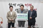 정오신문 관리자 기자 | 충남 서산시는 지난 11일 인지면 이장단협의회가 집중 호우 피해 성금으로 2백만 원을 기탁했다고 밝혔다. 시는 이날 시청 시장실에서 이완섭 서산시장, 가금현 인지면 이장단협의회 회장 등이 참석한 가운데 기탁식을 개최했다. 성금은 인지면 각 마을 이장이 기록적인 집중호우로 피해를 본 시민을 위해 마련한 것으로 알려졌다. 시는 집중호우로 인해 피해를 본 취약계층의 생계 지원과 피해 복구를 위해 대한적십자사에 성금을 전달할 계획이다. 가금현 인지면 이장단협의회 회장은 “갑작스러운 호우로 어려움을 겪는 이웃들에게 작은 힘이 되길 바라는 마음으로 성금을 전달하게 됐다”라며 “앞으로도 지역사회와 함께 상생하며 따뜻한 사회를 만들어가겠다”라고 말했다. 이완섭 서산시장은 “지역을 위해 항상 앞장 서주시는 인지면 이장단협의회에 깊은 감사의 말씀을 드린다”라며 “기탁된 성금이 집중호우로 피해를 본 시민에게 온정으로서 보탬이 될 수 있도록 잘 전달하겠다”라고 말했다.