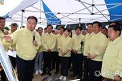 정오신문 관리자 기자 | 전남 무안군은 8일 더불어민주당 정청래 당대표 취임 이후 처음으로 열린 현장 최고위원회에서 무안읍을 방문한 당대표 및 지도부에 무안읍 상습 침수의 항구적 대책을 위해 국회 차원의 적극적인 지원을 건의했다. 무안군은 지난 3일부터 4일 새벽까지 이어진 시간당 131mm의 기록적인 집중호우로 인해 소하천 범람, 도로 유실, 공공시설 침수 등 곳곳에서 피해가 발생했으며, 무안읍에는 주택 침수로 인해 25세대 주민이 긴급 대피하기도 했다. 이날 현장 최고위원회에는 더불어민주당 정청래 대표, 서삼석 최고위원을 비롯한 지도부 등 16명이 대거 참석했으며, 현장 브리핑에서 김산 군수는 폭우 시 통수단면 부족으로 하천 범람과 무안읍 저지대 상습침수의 원인이 되는 송촌교 재가설과 무안천 하류구간 하천 정비사업을 건의했다. 이어서 개최된 간담회에서 피해 주민들은 피해 주택에 대한 신속한 지원과 풍수해생활권 정비 사업에 추가 지원을 통해 무안읍 침수 피해 예방에 도움을 줄 것을 요청했다. 김산 군수는 “이번 집중호우로 큰 피해를 입은 주민들이 하루빨리 일상으로 복귀할 수 있도록 신속하고 체계적