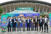 정오신문 관리자 기자 | 고창군이 전북현대모터스축구단과 손잡고 복분자와 수박 등 농특산품 홍보 행사를 열었다. 8일 고창군에 따르면 이날 저녁 7시 전주월드컵경기장에서 열린 전북현대의 홈경기에서 고창의 우수한 농특산품인 복분자, 수박 등을 홍보했다. 이번 경기는 ‘Fruits Friday’ 테마로 복분자, 수박, 복숭아 등 지역별 과일이 소개됐다. 심덕섭 고창군수가 경기 시작을 알리는 시축을 선보였고, 고창의 대표 농특산품인 복분자즙과 수박 시식회가 마련됐다. 선수들과 관중들은 고창의 신선한 농특산품을 직접 맛보고, 연신 엄지를 치켜 세웠다. 특히 고창 대표 농특산품인 복분자는 항산화 작용이 뛰어날 뿐만 아니라 심혈관 건강을 증진하는 데 도움을 주는 것으로 알려져 있어 많은 관심을 받았다. 고창군은 지역 농산물의 판로 개척과 더불어 지역 농가에 실질적인 도움을 주기 위해 마케팅을 강화하고, 전북현대와 지속적인 협력을 통한 상생 모델을 적극적으로 추진할 계획이다. 심덕섭 고창군수는 “전북현대와 함께하는 이번 행사를 통해 우수한 고창 농특산품을 많은 관중분들게 알릴 수 있는 좋