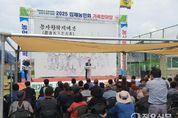 정오신문 관리자 기자 | 농민회 회원의 화합과 농업 ․ 농촌의 발전을 위한 새로운 각오를 다지는 '2025 김제농민회 가족한마당 행사'가 성황리에 개최됐다. 김제시에 따르면 7일 정성주 김제시장, 전국농민회총연맹 하원오 의장 등 내외빈과 회원 등 200여명이 참석한 가운데 김제시 조수골 체험 휴양마을에서 '2025 김제농민회 가족한마당 행사'가 열렸다. 이날 행사는 신명나는 장고 공연으로 문을 열었고, 개회식에서는 김제농민회 최재선 회장의 대회사, 내빈의 격려사 및 축사, 결의문 낭독으로 진행됐으며 이후 레크레이션과 물놀이 등을 통해 바쁜 농번기를 끝내고 마음의 시름을 덜고 모두가 하나가 되어 한 가족이라는 공감대를 형성하는 쉼과 나눔의 시간을 가졌다. 김제농민회 최재선 회장은 대회사를 통해 “최근 대미 농산물 전면개방 요구, 생산비 폭등, 이상 기후로 인해 갈수록 농민들의 살림살이가 팍팍해지고 있지만 농업은 포기할 수 없는 주권이며 생명이기에 다시 모를 심고 밭을 일구며 국민의 먹거리를 책임지고 있다”며 “오늘 가족한마당 행사를 통해 지역 농업의 활로를 모색하고 농민회의 단합과 친선을 도모하여 김제농업의 중추