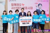 정오신문 관리자 기자 | 충남 서산시는 7일 영웅시대 서산태안이 호우피해 주민을 위해 4백만 원 상당의 물품을 전달했다고 밝혔다. 시는 이날 시청 시장실에서 이완섭 서산시장, 이경미 영웅시대 서산태안 회장 등이 참석한 가운데 기탁식을 개최했다. 영웅시대 서산태안은 가수 임영웅의 팬클럽으로 봉사와 기부를 통해 선한 영향력일 지속 전파하고 있다. 이날 전달된 물품은 서큘레이터를 비롯한 가전제품이며, 집중호우 피해로 어려움을 겪고 있는 주민에게 전달될 예정이다. 이경미 영웅시대 서산태안 회장은 “이번에 전달한 물품이 집중호우 피해를 본 분들의 마음에 온정으로써 힘이 되길 바란다”라고 말했다. 이완섭 서산시장은 “집중호우 피해를 본 시민의 마음에 온정을 전달한 영웅시대 서산태안 회원들에게 감사의 말씀을 드린다”라며 “각계각층에서 전달한 온정을 집중호우 피해 시민에게 전달하는 한편, 시민의 빠른 일상 회복에 최선을 다하겠다”라고 말했다.