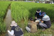 정오신문 관리자 기자 | 평택시 오성뜰은 2018년 농업생태원 공원 부지 안에 조성된 논으로, 농업생태원 방문객에게 벼의 생육 단계별 달리지는 모습을 전시해 다양한 볼거리를 제공하고 모내기·탈곡 등 체험 목적으로도 활용되고 있다. 2022년부터는 논에 사는 생물을 보존하기 위해 농약 등을 사용하지 않고 친환경 재배를 이어오고 있다. 해당 조사는 논의 다원적 기능 중 하나인 생물 다양성을 확인하고 농업 환경보전 인식을 높이기 위한 목적으로 진행됐고, 작년에 이어 올해도 논 생물 다양성 조사를 진행했다. 조사 결과 오성뜰 논에는 아가미실지렁이, 장수깔따구, 호르바드깨알소금쟁이, 연못하루살이 등 39종의 생물종이 서식하고 있으며, 도심 속 공원에 조성된 농지임에도 친환경 농지와 비슷한 수의 생물 개체 수가 폭넓게 서식하고 있어 도시민들이 자연을 가까이서 느낄 수 있는 생태공간으로의 역할을 하고 있다. 또 농업생태원 오성뜰에서는 5월부터 10월까지 어린이 단체를 대상으로 수서생물 체험 프로그램을 진행해 논 생물을 직접 만져보고 탐구할 수 있으며, 방문객 누구나 생태원 오성뜰과 인근 둠벙에서 다양한 수서생물
