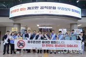 정오신문 관리자 기자 | 아산시가 아산시공무원노동조합과 함께 6일 아산시청 로비에서 음주운전 없는 안전한 공직사회 구현을 위한 ‘음주운전 근절 캠페인’을 추진했다. 이번 캠페인은 음주운전은 시민의 생명과 공직 신뢰를 훼손하는 중대범죄라는 강한 메시지 전달을 통해 공직자 스스로 음주운전 및 숙취운전의 위험성에 대한 경각심을 갖고 공직자의 품위와 신뢰를 지키는 안전한 조직 문화를 조성하고자 마련됐다. 캠페인은 오세현 시장과 박민식 아산시공무원노동조합 위원장의 음주운전 근절을 위한 ’공동 실천 서약’으로 본격 시작됐다. 시는 음주운전 예방을 위해 플래카드 게시, 홍보 어깨띠 착용, 안내문 배부 등 적극적인 홍보활동을 펼쳤다. 특히 이번 캠페인에는 아산시의회와 아산 경찰서 직장협의회도 동참해 의미를 더했으며, 아산보건소는 개인의 음주 위험도를 확인할 수 있는 ‘음주위험 체질 패치’를 제공하는 등 실효성 있는 현장 활동도 병행했다. 오세현 시장은 “음주운전은 어떤 이유로도 용납될 수 없으며, 공직사회의 음주운전이 근절될 수 있도록 자정노력을 지속하겠다”고 밝혔다.