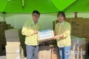 정오신문 관리자 기자 | 사천시는 김제홍 부시장과 직원 등이 산청군 재난현장통합지원센터를 방문해 이재민과 현장 수해복구 봉사자를 지원하기 위한 폭염 대응 물품을 전달했다고 30일 밝혔다. 이날 김제홍 사천시 부시장과 직원 등은 폭염에 피해 복구를 위해 애쓰고 있는 봉사자들을 위해 선스틱 200개, 쿨토시 200개 등의 폭염 대응 물품을 지원했다. 한편, 사천시는 지난 22일부터 공무원 260여 명, 세척용 차량 및 중장비 16대를 파견해 피해현장 복구를 돕고 있는 것은 물론 식료품 및 생활용품을 전달하는 등 지원을 아끼지 않고 있다. 또한, 사천시 여성민방위기동대 15명, 지역자율방재단 30여 명이 수해복구 현장에서 봉사활동을 실시하는 등 다양한 단체들의 도움의 손길도 이어졌다. 김제홍 부시장은 “이번 호우로 우리 이웃인 산청군에 큰 피해가 발생해 참으로 안타깝다”며 “작은 도움의 손길이 수해로 상처입은 군민과 구슬땀을 흘리는 자원봉사자들에게 조금이나마 희망이 됐으면 한다”고 말했다.