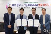 정오신문 관리자 기자 | 대전 동구는 6일 신용회복위원회 대전충청지역본부(본부장 이승욱)와 금융 취약계층 지원을 위한 업무협약을 체결했다고 밝혔다. 이번 협약은 과다채무 등으로 어려움을 겪는 주민을 조기에 발굴하고, 채무조정 등 맞춤형 상담을 통해 경제적 자립을 지원하기 위해 추진됐다. 협약에 따라 구는 채무로 인해 어려움을 겪는 금융 취약세대를 적극 발굴하고, 개인 채무조정 상담 등을 비롯한 신용회복위원회의 지원을 연계할 예정이며, 신용회복위원회는 워크아웃, 개인회생 등 채무조정 서비스를 통해 주민들의 경제 회복 기반을 마련할 계획이다. 이승욱 신용회복위원회 본부장은 “채무 종합 상담 기구로서 동구와 협력해 전문적인 상담 제공은 물론, 복지 사각지대 발굴과 연계 서비스에 꾸준히 관심을 갖고 함께하겠다”고 말했다. 박희조 동구청장은 “이번 협약이 채무 문제로 인해 위기에 처한 주민들에게 희망과 재기의 발판이 되길 기대한다”며 “앞으로도 민관이 함께 힘을 합쳐, 더 촘촘한 복지안전망을 구축해 나가겠다”고 전했다. 한편, 구는 지난달 동 행정복지센터 복지팀장 및 담당자를 대상으로 ‘금융 취