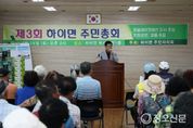 정오신문 관리자 기자 | 고성군 하이면 주민자치회(회장 이은호)는 7월 26일 하이면복지회관에서 이상근 고성군수, 최을석 고성군의회 의장, 허동원 경남도의회 위원장, 백수명 경남도의회 위원장, 정영환 군의원 등 지역사회 단체장과 마을 이장 및 19개 마을 주민들과 함께 2025년 제3회 하이면주민자치회 주민총회를 개최했다. 이번 주민총회는 내빈과 주민 200여 명이 참석한 가운데 △식전문화공연(고고장구) △웃음 레크레이션 △기념사(축사) △주민자치회 현황 보고 △2026년 자치계획 발표 △문화공연(노래교실 합창, 통기타 연주, 색소폰 연주) △사전투표 및 현장투표 결과 발표순으로 진행됐다. 이은호 하이면 주민자치회장은 “무더위 속에서도 올해 세 번째를 맞이한 주민총회를 함께해 주신 모든 분께 진심으로 감사드린다”라며, “주민들의 다양한 의견을 폭넓게 수렴하여 진정한 주민자치 실현에 앞장서고, 지역사회와 항상 소통하고 공감하는 자치회가 되도록 더욱 정진하겠다”라고 말했다. 이날 총회에 참석한 이상근 군수는 “여기 계신 주민자치회 위원님들 한 분 한 분의 마음이 하이면을 더 살기 좋고 행복한 동네로 만드는 가장 큰