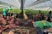 정오신문 관리자 기자 | 경상남도는 26일 집중호우로 피해를 입은 진주시와 하동군 딸기육묘 시설하우스 수해현장을 찾아 복구 상황을 점검했다. 이날 박명균 행정부지사는 진주시 수곡면 원계마을 딸기육묘 시설하우스를 찾아 장비동원과 인력수급이 원활한 지를 살펴본 데 이어, 하동군 옥종면 병천리 일원 시설하우스에 대한 철거작업의 진행상황을 면밀히 점검했다. 26일 현재 진주시 농업분야 총 피해현황은 306ha 200억원으로 원계마을에서는 딸기육묘 시설하우스 597동이 침수되어 70억원 상당의 피해를 입은 것으로 파악됐으며, 하동군에서는 143ha 107억원으로 옥종면 일대 딸기육묘 시설하우스는 1,246동이 침수되어 102억원의 피해를 입은 것으로 잠정 집계됐다. 박 부지사는 현장점검 중 복구 작업에 투입된 150여명의 자원봉사자들과 시군 직원들에게 감사를 전하고 격려했으며, “무더운 날씨에도 복구작업에 동참해 주신 모든 분들께 깊이 감사드리며, 큰 피해를 입은 농업인들이 하루빨리 일상으로 복귀할 수 있도록 도 차원의 지원을 계속해 나가겠다” 고 밝혔다. 한편, 경남도는 태풍·집중호우·폭염·가뭄 등 여름철