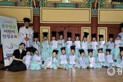 정오신문 관리자 기자 | 충주향교가 운영하는 어린이 인성교육 프로그램이 어린이와 학부모의 큰 호응을 얻으며 지역 대표 인성교육 모델로 자리매김하고 있다. 충주향교는 2020년부터 충주시의 지원을 받아 7세 어린이를 대상으로 전통 인성교육을 실시해 왔으며, 올해 7월까지 266명의 어린이가 수료했고 누적 수료 인원은 총 1,880명에 이른다. 교육은 7주간 주 1회, 2시간씩 총 14시간 과정으로 구성되어 있으며, 한문과 한자 수업이 각각 1시간씩 진행된다. 한문 수업은 충주향교에서 자체 제작한 ‘동몽선지’ 교재를 활용해 4자로 된 4문장을 전통 방식의 독송으로 학습하며, 노래하듯 암송하는 방식으로 흥미와 기억력을 높이고 있다. 한자 시간에는 매주 10자를 배우며 △1~3주에는 컴퓨터 마우스로 따라 쓰기 △4~6주까지는 물로 쓰는 서예로 한자 쓰기 체험 △7주는 어린이의 한문 이름 풀이와 장래 희망 발표로 마무리된다. 이 프로그램은 바른 인성 함양을 목적으로 한자와 한문의 내용을 이해하면서 사람의 본성을 알게 되고, 친구 간 화합하면서 질서를 지키는 법과 효심도 기를 수 있어 부모와 아이