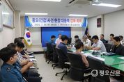 정오신문 관리자 기자 | 무안경찰서는 30일 2층 소회의실에서 경찰서장, 각 과장, 지·파출소장 등 40여 명이 참석한 가운데 중요 사건 현장대응력 강화 회의를 개최했다고 밝혔다. 이날 회의에서는 최근 인천 송도에서 발생한 총기사건, 외국인 근로자 학대사건 등 사회적 이목을 끄는 중요 사건 조치 방안 및 보고체계 확립에 대한 의견을 나누고 방안을 마련하는 시간을 가졌다. 정성일 무안경찰서장은 “최근 사회적 관심이 높은 가정폭력이나 교제폭력 등 관계성 범죄에 대해서 필요한 가용경력을 최대한 동원해 적정한 현장조치가 이뤄질 수 있도록 하고, 검거된 피혐의자에 대한 관리 및 초동수사에도 만전을 기해야 할 것”이라며 “이를 위해 동료 의식과 적극적인 마음가짐을 갖고 최선을 다하자”고 말했다.